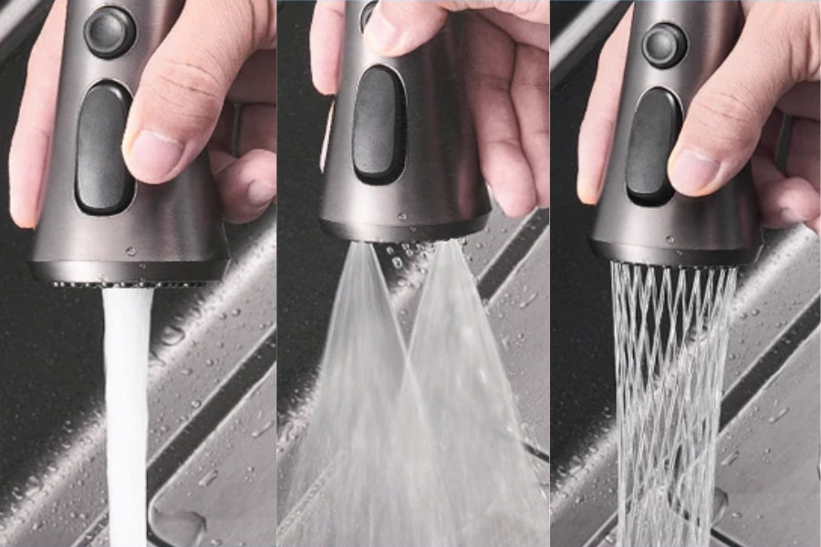 This kitchen faucet offers multiple water outlet modes, suitable for various kitchen scenarios, significantly enhancing the faucet's functionality and cleaning efficiency.