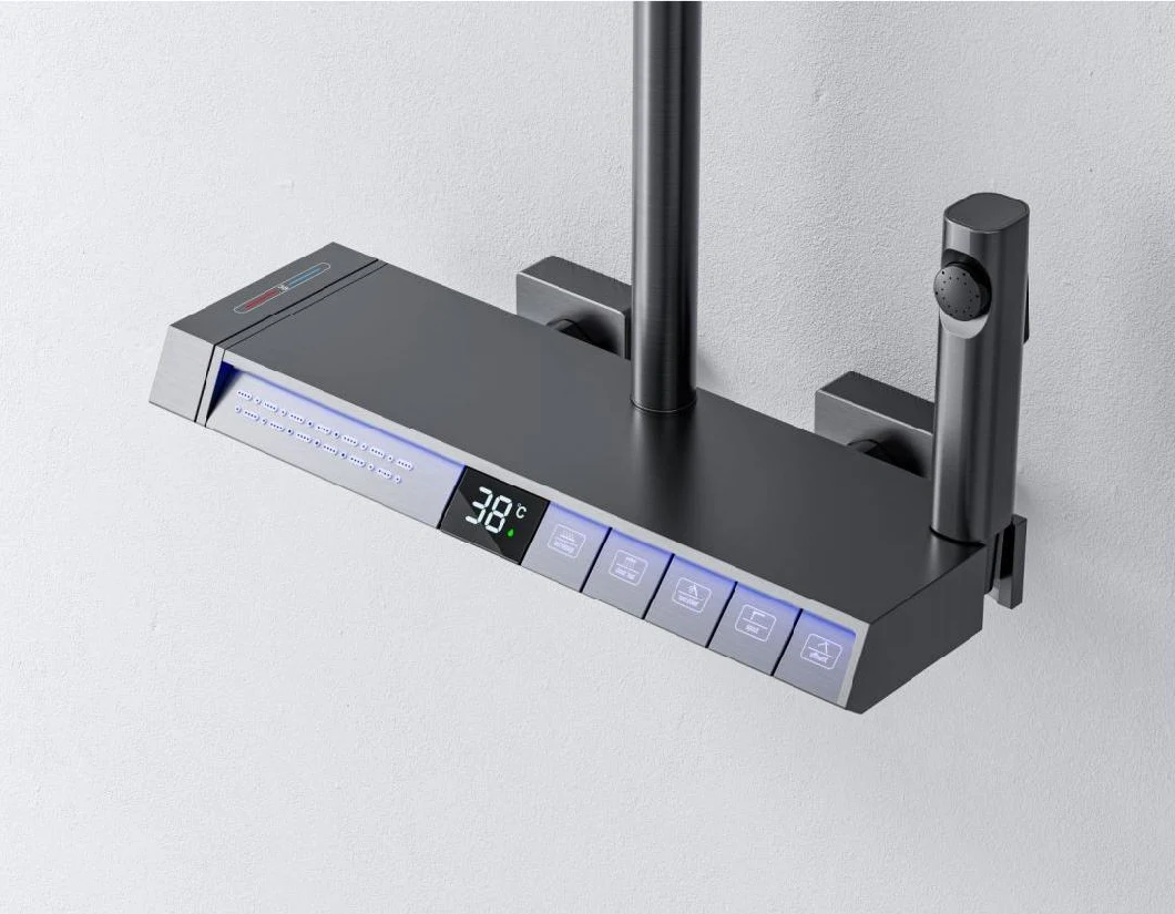 Our shower system includes a temperature display feature to ensure your water is at the perfect temperature, with readings shown in Celsius. Our innovative design integrates ambient lighting strips, enhancing the visual experience of your shower.